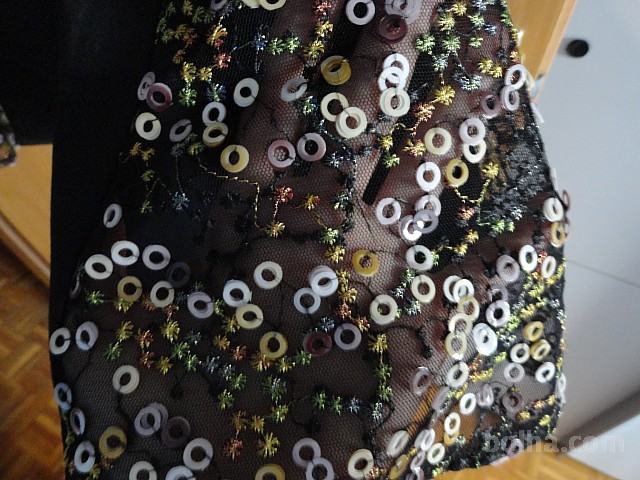 Kostim št36 S svečan krilo in bolero z bleščečimi rožicami in krogci. 1x nošeno .