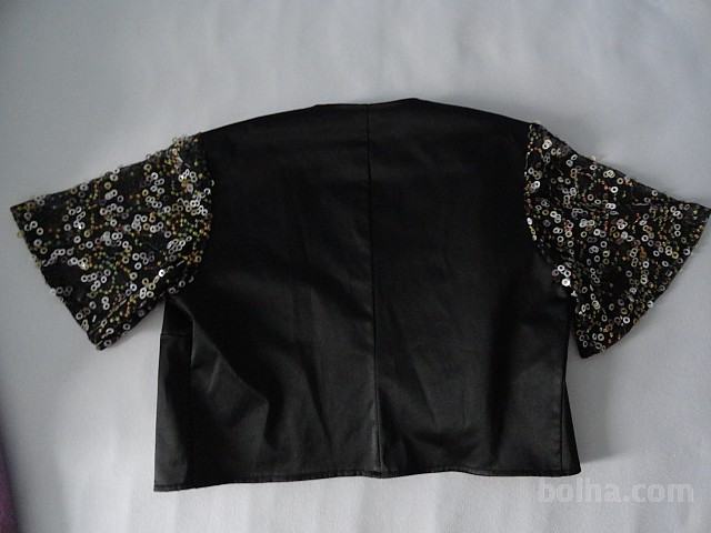 Bolero se zapenja kot nederček in ima rokav rahlo na zvonc. 97% bombaž 3% elastan 100 % viskoza. Bolero dolžina 39cm,zadaj 41cm,čez rame 36,5cm. širina 41cm. Kriloa se zapenja z zadrgo in gumbom. Dolžina 63cm,pas 36cm,razteg 36,5cm. Cena 7,00 eur .
