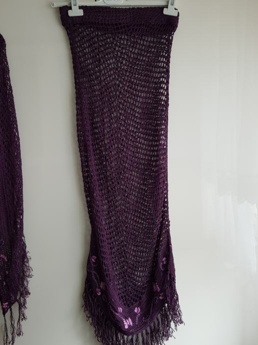 Nošen max 3x, kot nov, pleten, raztegljiv, s cvetlično vezenino