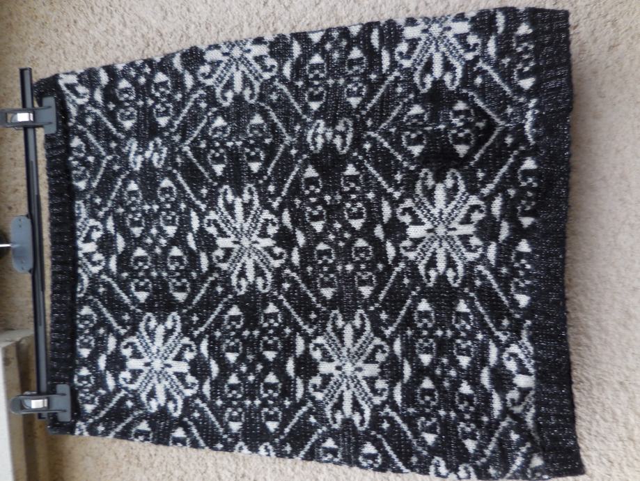 Samo kupljen, nikoli nošen, zelo topel. Krilo ima v pasu 3cm široko elastiko, po celotnem krilu so vpletene rahle srebrne nitke. Orig. veliksot je XS, vendar je kopl primeren za S in M.