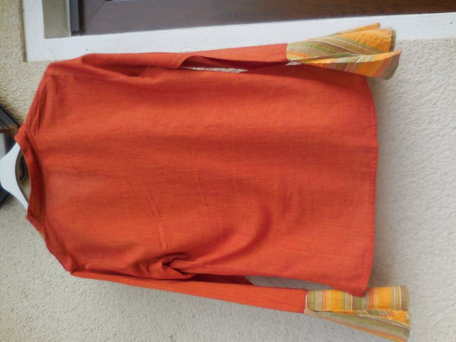 Čudovit nov bombažni komplet Sariko, ni podložen in ni raztegljiv, krilo se zapenja ob strani na zadrgo.