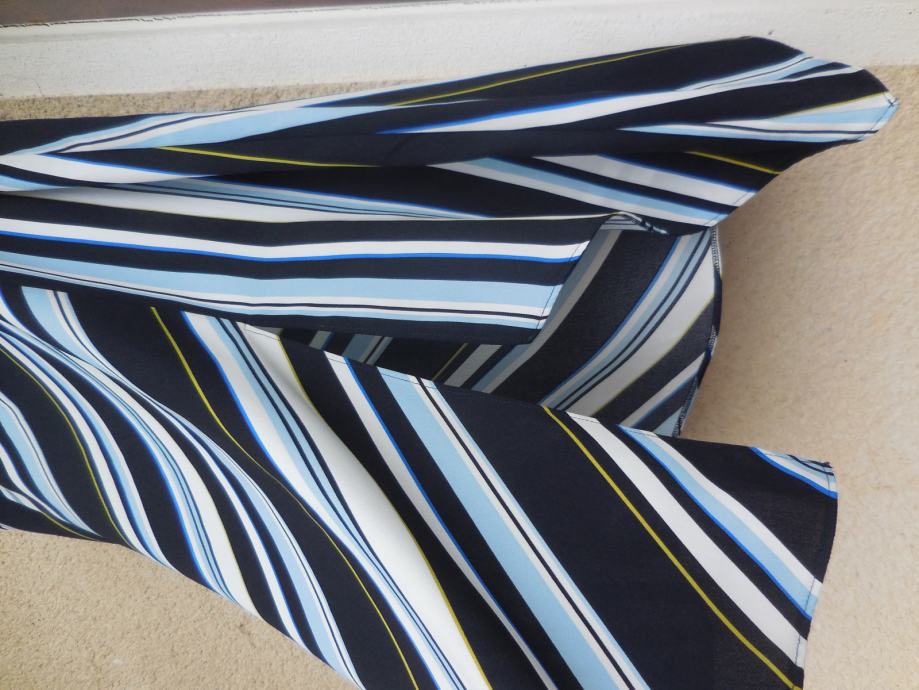 Čudovit nov Wallisov komplet v črno belo modri kombinaciji krila in dolgega plašča z etiketo (plašč je vel.42, krilo pa 44). Komplet ni podložen in ne raztegljiv. Krilo se zapenja ob strani na zadrgo, na sprednji strani ima 35cm dolg razporek in je na eni strani je daljše. V pasu ima 2 zanki za pas. Dolžina plašča je pod koleni in je brez gumbov.