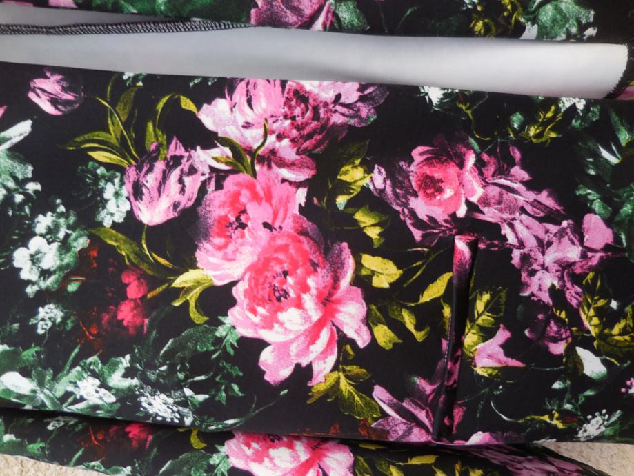Nenošen komplet krila in jakne, zelo kompaktne in kvlitetne izdelave, ni podložen in je raztegljiv. Krilo ima v pasu 4c široko elastiko in je čez boke nekoliko širše. Jakna je brez zapenjanja. Origi. oznaka je 40, vendar je primerna tudi za velikost 42.
