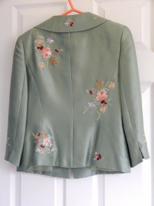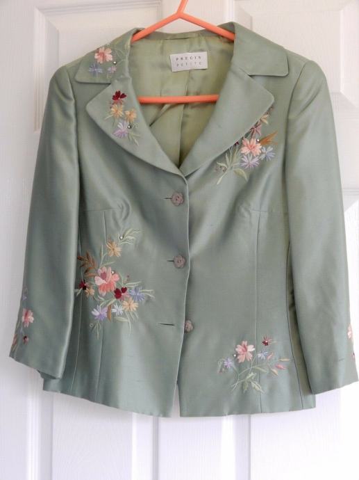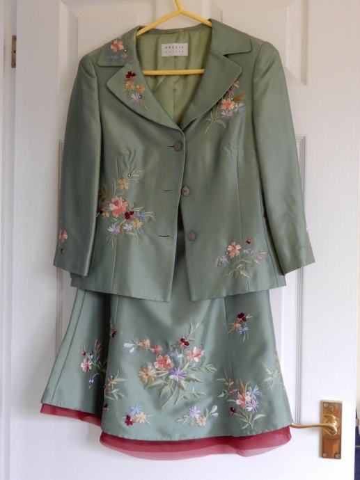 1x oblečen zelo eleganten komplet krila in jakne z cvetlično vezenino. Komplet je podložen in ni raztegljiv.