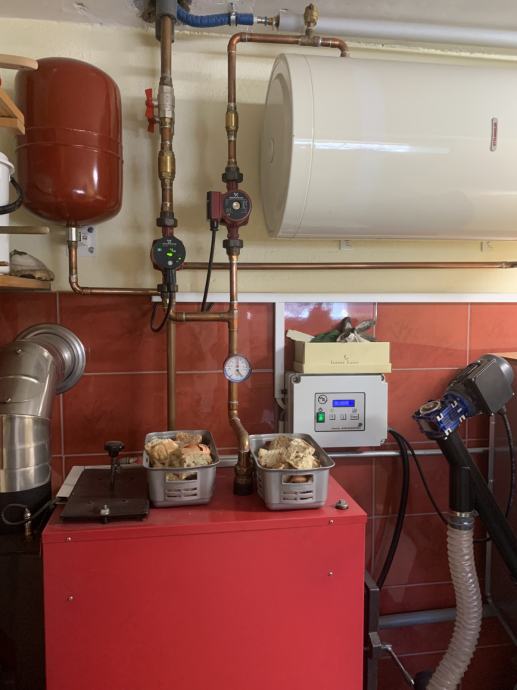 V kompletu prodamo plamenovevni kotel VTK25 - VREČEK Zg. Brnik. in Gorilnik PELETKO (izdelovalec Robert Mramor s.p.) z zalogovnikom za pelete,transportnim polžem in pripadajočo elektroniko. Gorilec je obnovljen in v odličnem stanju. V kompletu sta tudi obe črpalki GRUNDFOSS in 140l dvoplaščni boiler. Kotel je kot nov in je namenski za gorilnik na pelete z visokimi izkoristki.Priklop dimniške cevi navzgor ( kot na sliki). Priloženo je tudi nekaj dimniških cevi in expanzijska posoda.