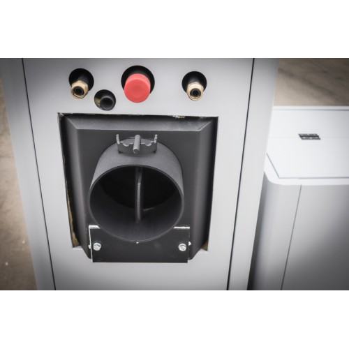 • Kotel nima odprtine za regulator vleka, vendar ima na izhodu dodaten kotlovski ventilator (uporablja se tudi, ko kotel izgoreva les).