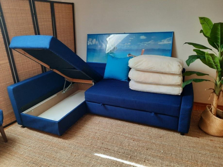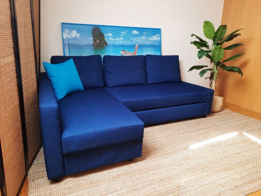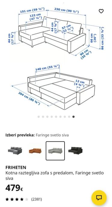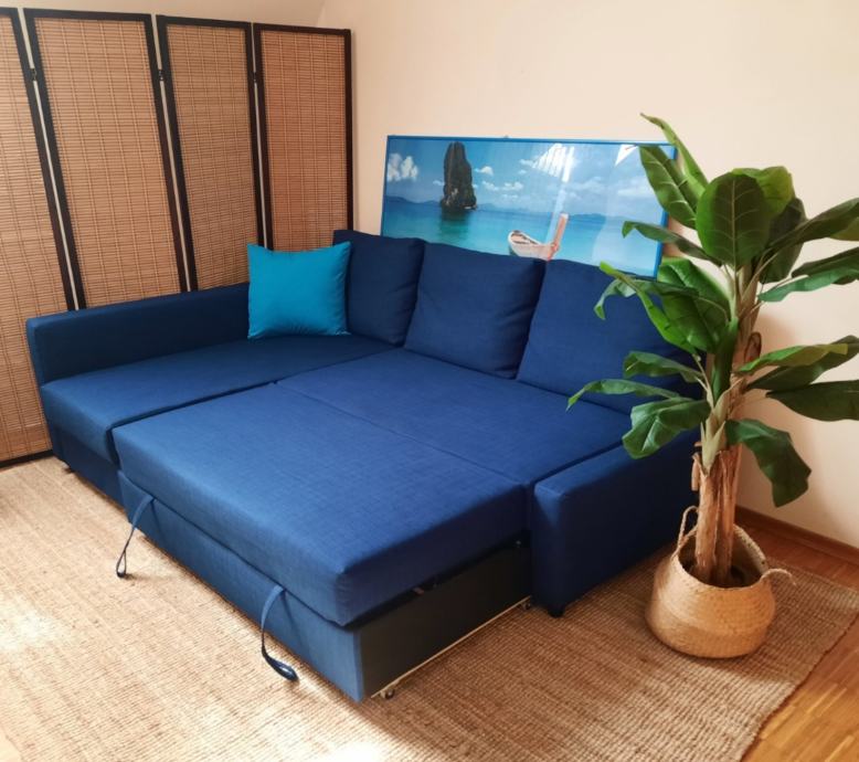 Prodam raztegljivo sedežno znamke Ikea Friheten. Kavč je v bil renoviran/ nadgrajen. Po 6 mescih uporabe se mu je lastnik odrekel zaradi polite pijače.