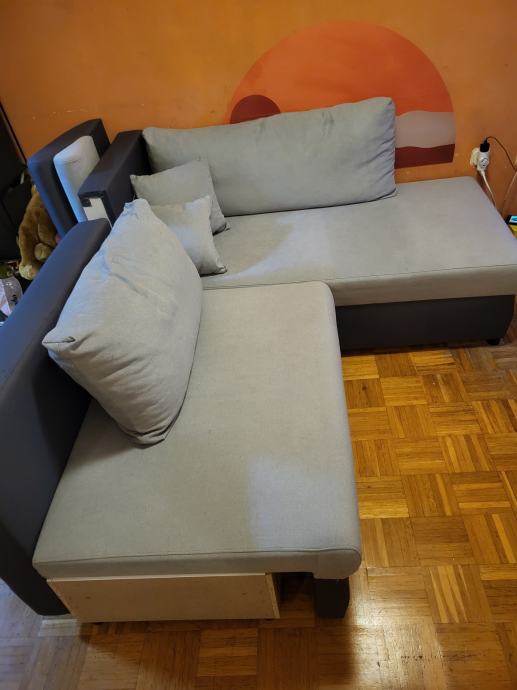 Zaradi selitve prodamo 1 leto star kavč, manj uporabljan in še ne popolnoma sestavljen (stranice in hrbtišče niso bili nikoli priviti; so nedotaknjeni). Cena ob nakupu je bila nekaj čez 600 eur, ker pa ga je na eni strani malo popraskal muc, je cena nižja.