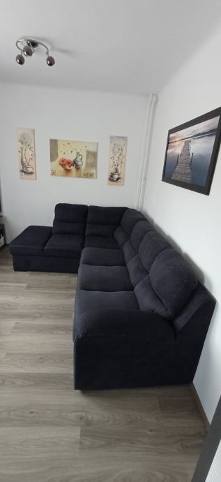 Prodajam rabljeno kotno sedežno garnituro antracit sive barve v zelo dobrem stanju. Garnitura je prostorna, udobna in odlično se prilega v vsak sodoben dom. Eden od delov ima tudi praktičen predal za shranjevanje in je vzmetena. Poleg tega ima izvlečno ležišče.