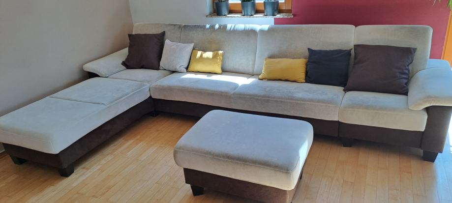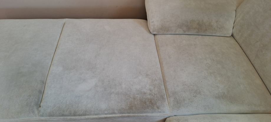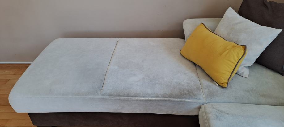 Potrebno je kemično čisčenje,material je mikrofiber.Dolžina 340 cm globina 90 cm.Podarja se zaradi nakupa nove