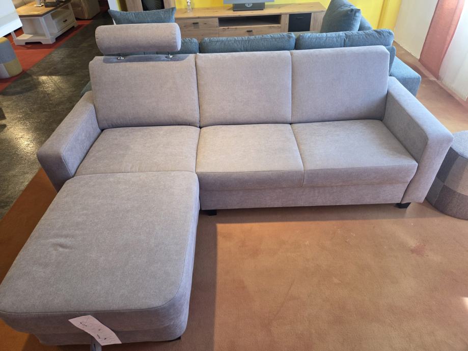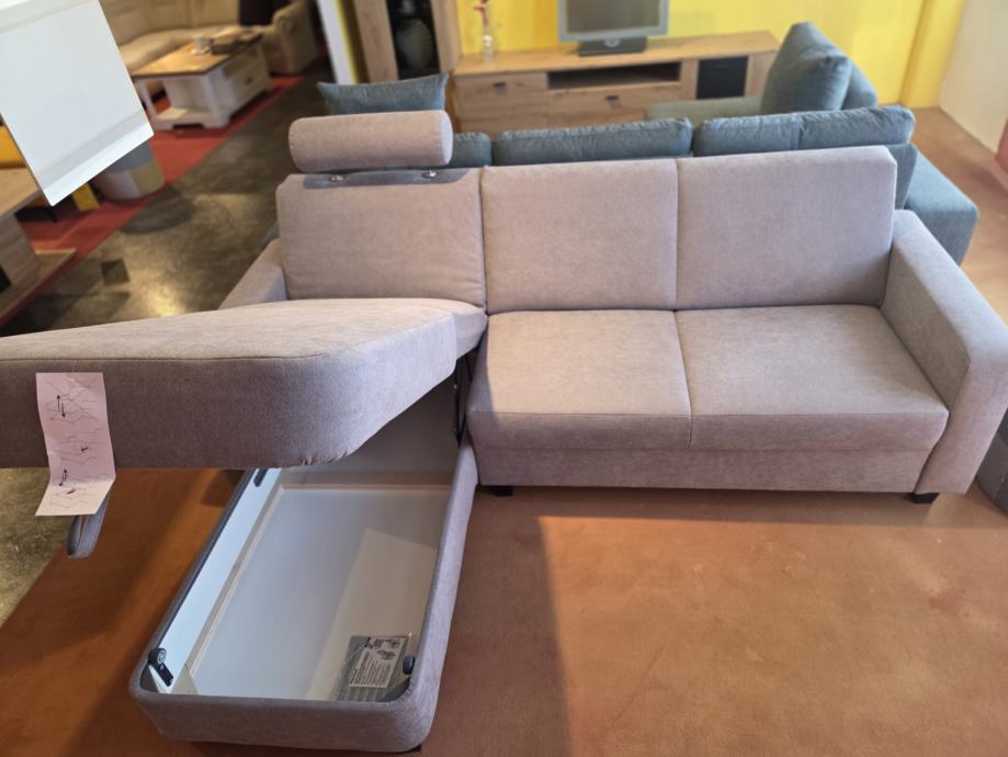 PRIMER SEDEŽNE GARNITURE: DIM. 165 X 228 CM, V MIKROFIBRI, S FUNKCIJO ZABOJA NA OTOMANU TER FUNKCIJE PODALJŠANJE OTOMANA V LEŽIŠČE.