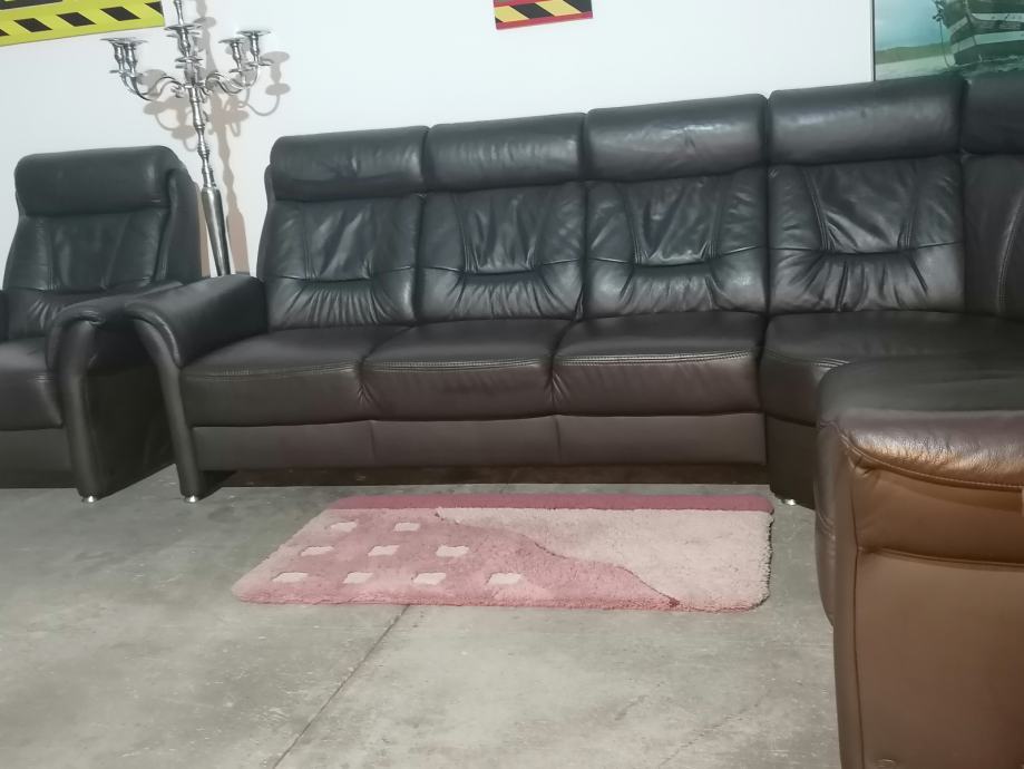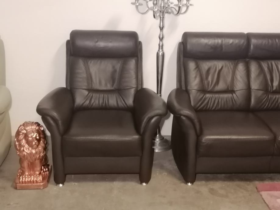 ZELO VISOKA GARNITURA »MARIEHOLM« in VELIKI FOTELJ, znanega švedskega proizvajalca. Kakovostno usnje SEVERNEGA JELENA. Izredno kakovostno in DRAGO USNJE (kompaktno in močno usnje !!! GRE ZA SEDEŽNO VISOKEGA CENOVNEGA RAZREDA. LETO IZDELAVE : 01/2025 Rabljena na Švedskem kot RAZSTAVNI EKSPONAT. REDNA CENA V SKANDINAVIJI : 8300 eur. Stanje sedežne je popolnoma BREZHIBNO, sedežna garnitura je NOVA !!! Ni raztegljiva ! Zelo KOMFORTNA !