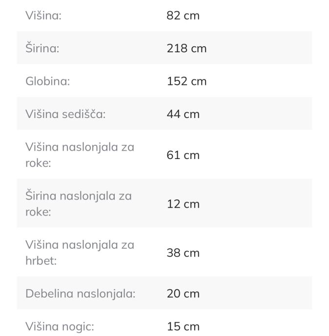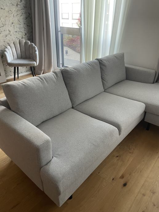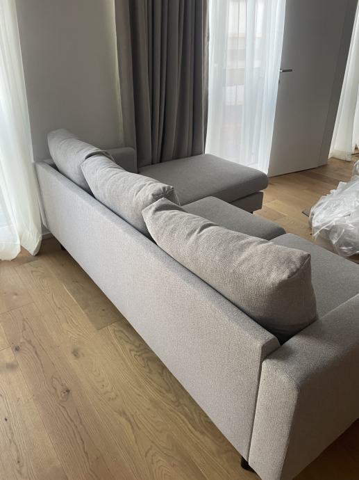 Prodam sedezno garnituro dimenzij 218 cm dolzine, siva barva, grande tkanika. Nova, sestavljena, neuporabljena.