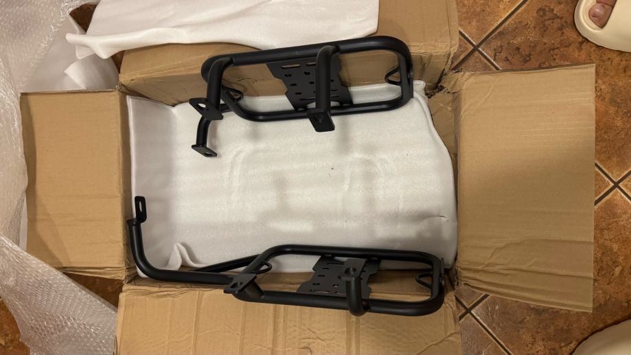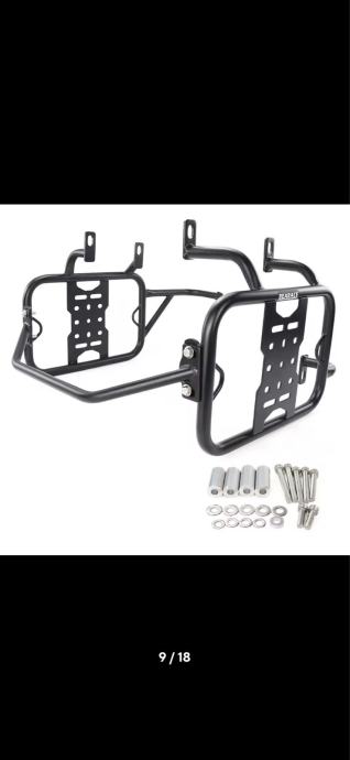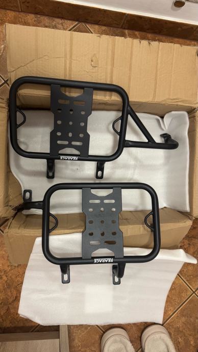 Prodam nove nosilce stranskih kovčkov za CF MOTO 450 MT. Nosilci so novi in neuporabljeni. Priloženi vijaki in distančniki.