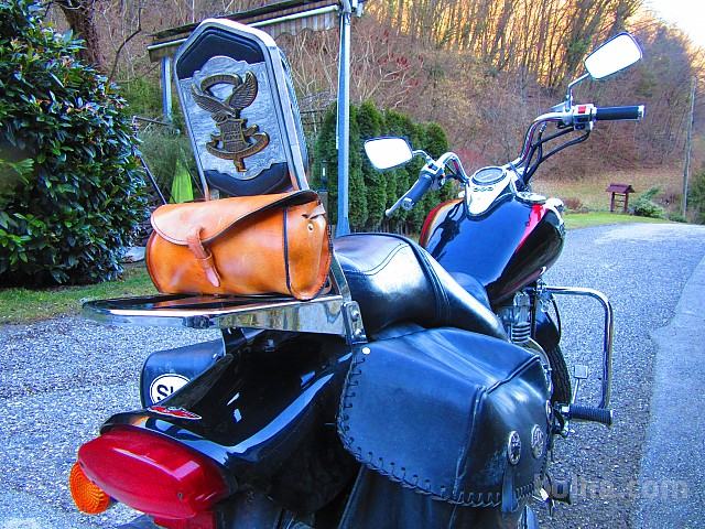 Zaradi nepričakovane prodaje chopperja zelo ugodno prodam dve nerabljeni torbi za chopper na sliki. Izdelani so ročno iz naravnega debelega usnja in je res lepa priložnost za poceni nakup, saj ena torba stane le 9 evrov!!:-) Naročilo in info na tel.068-177-526 ali mail staralesina@gmail.com