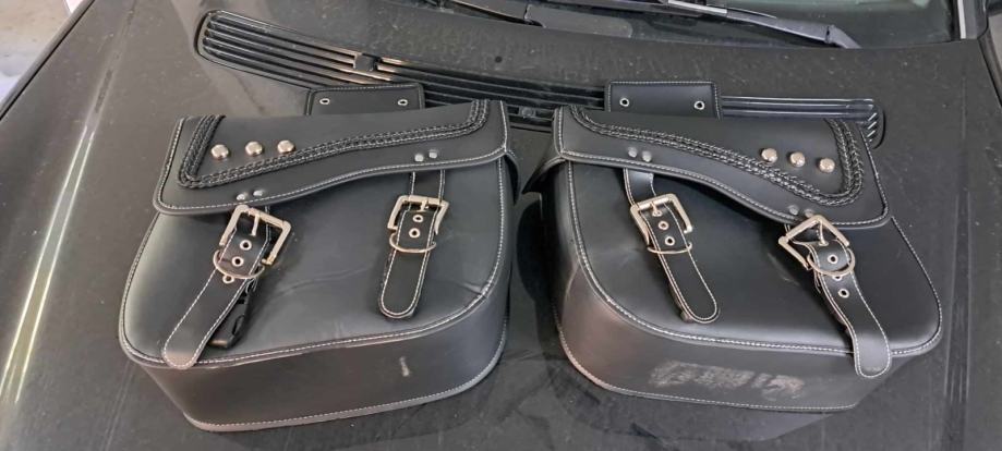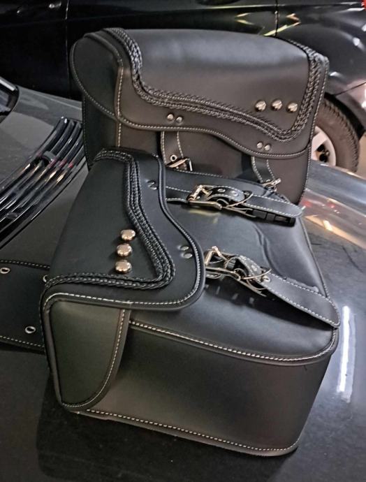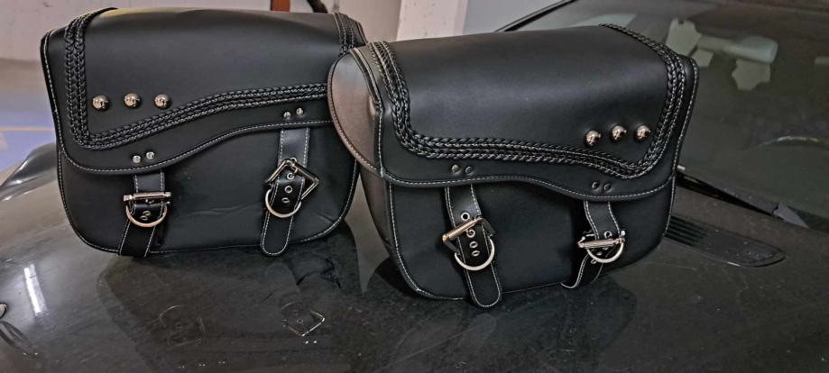 Kompaktne nepremočljive torbe, imitacija usnja. Še neuporabljene. V:29, Š:15, D:33,5 cm.