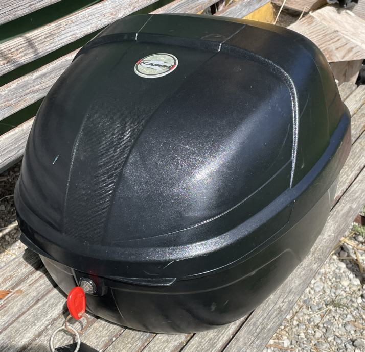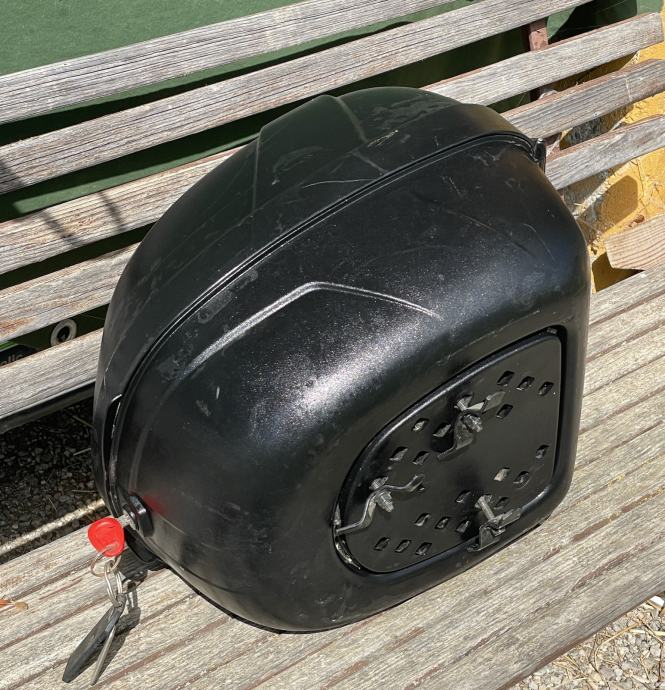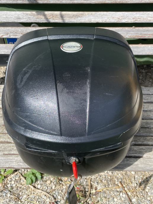 Prodam zadnji kovček za motor moped scooter Kappa Top Case s ploščo, držali za pritrditev, vijaki in ključi rabljen primeren za eno čelado in še kakšno stvar za 40€ oz. Po dogovoru