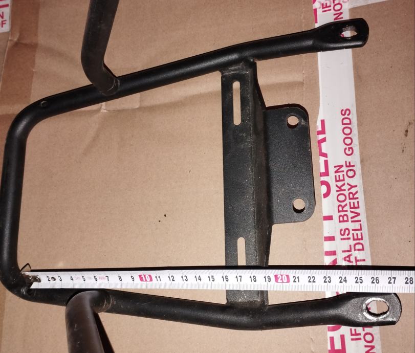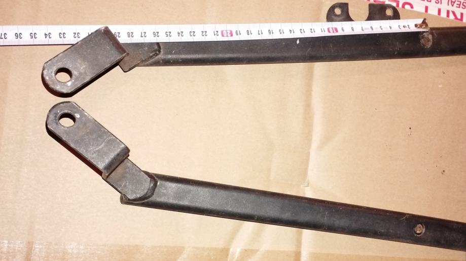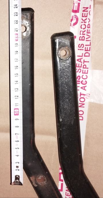 Na slikah so mere, potrebno je izmeriti na vozilu če ustrezajo. Nosilci so iz jekla, lahko se naredi druge luknje, če ne ustrezajo.