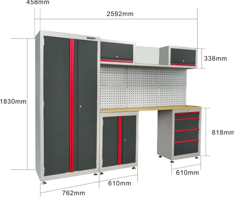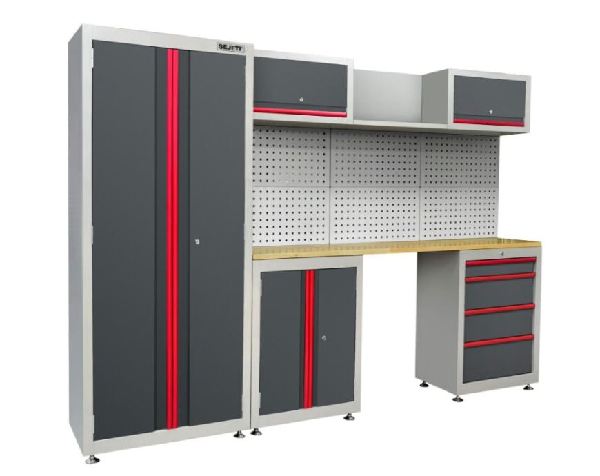 Organizirajte svojo garažo elegantno in funkcionalno! Komplet delavniškega pohištva je celovita rešitev, ki vam bo pomagala organizirati prostor v garaži.