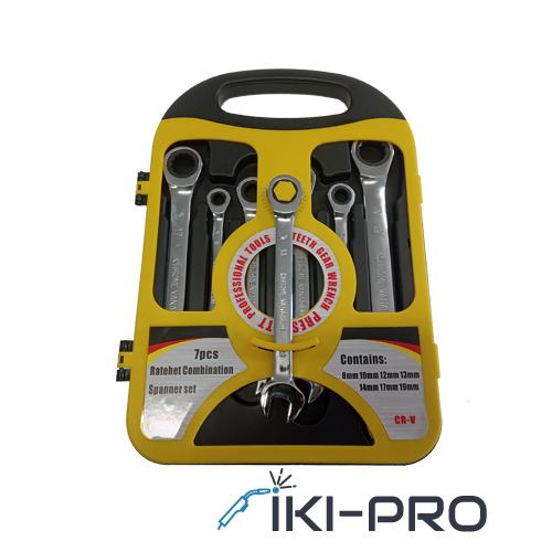Ključi z ragljo v velikosti 8 – 19mm iz izredno kakovostne krom – vanadijeve zlitine. Komplet vsebuje 7 kosov ključev z ragljo. Uporaba raglje vam izredno pospeši delo in s tem prihrani čas.