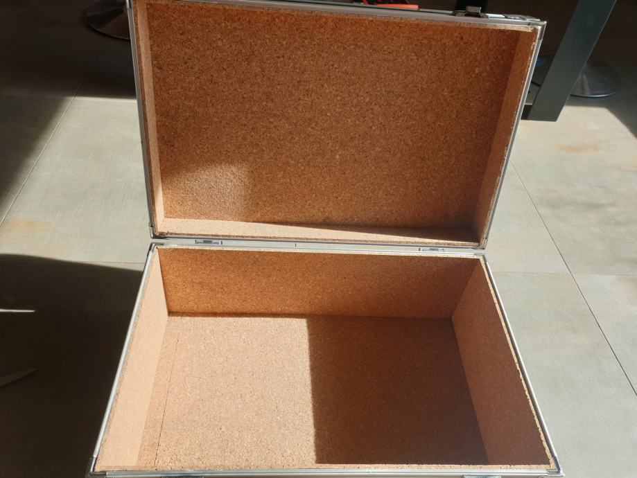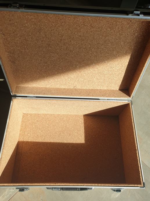 Prodam kovinski kovček. Notri je obložen z pluto. Zunanje dimenzije: višina: 24cm, dolžina 54,5cm in širina 35,5cm.