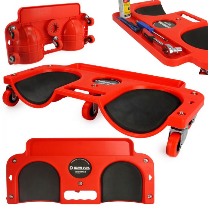Roler za kolena je izdelan iz robustnega ABS-a in lahko prenese maksimalno obremenitev 350 kg. Na sprednji strani deske je podolgovat pladenj za orodje. Orodja, ki jih potrebujete, lahko shranite tukaj in so tako takoj pri roki. Za lažji transport kolenskega skiroja je med kolenčnikoma vdolbina, ki služi kot ročaj. Na ta način lahko kolesarsko desko zlahka vzamete kamor koli jo potrebujete.