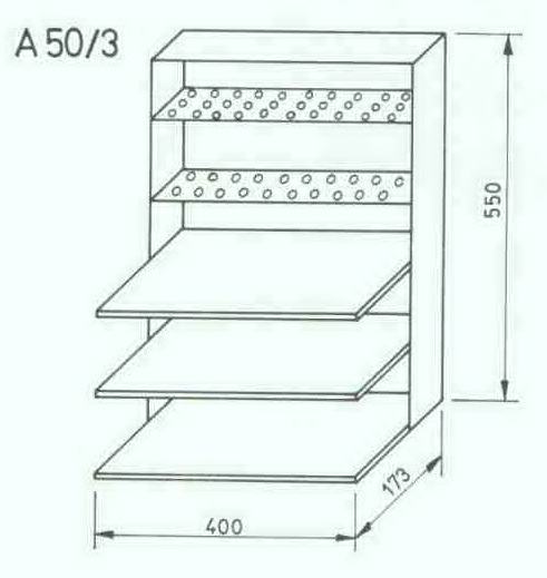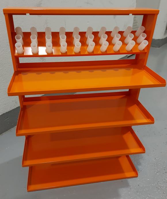 Na voljo model s 4 policami in 30 plastičnimi vložki v oranžni barvi.