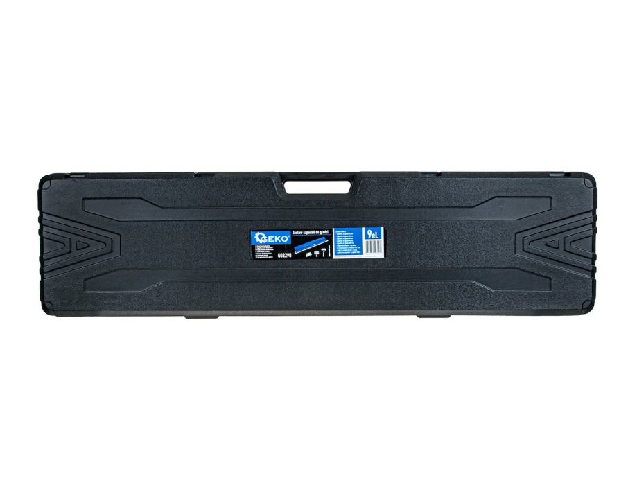 Profesionalni 9-delni komplet kita za mavčne mase v trpežnem kovčku vključuje celoten nabor orodij, potrebnih za natančen nanos in glajenje kita na velikih in majhnih površinah – od sten do stropov in težko dostopnih mest.