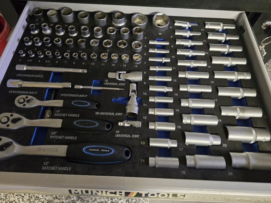 VOZIČEK Z ORODJEM, PROFI IZVEDBA, PREKO 500 KOSOV KVALITETNEGA ORODJA, V UPORABI SAMO NEKAJ KOSOV ORODJA, NEMŠKO POREKLO, VELIK VOZIČEK DIM.100X85X50CM,STRANSKA VRATA S PREDALI,1.LASTNIK, UGODNA CENA KOMPLETA, TEL.031 275 440