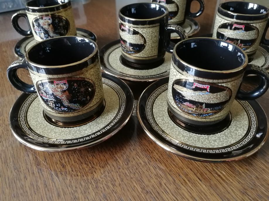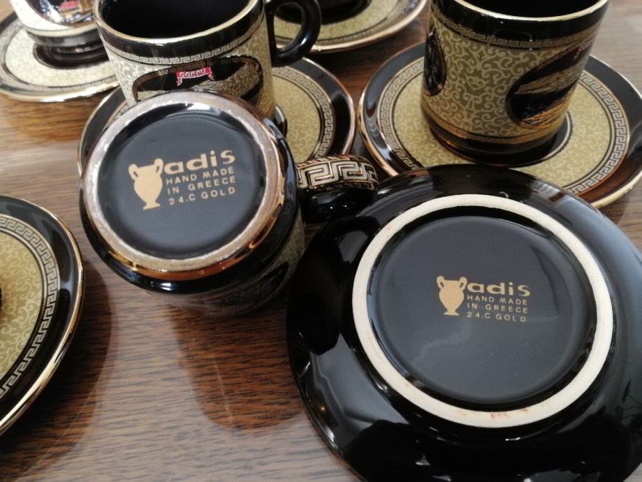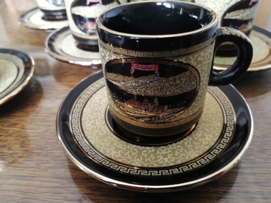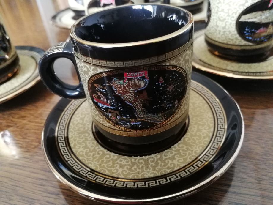 Kavni servis, 6 skodelic s podstavki,pozlačen, ročno delo, Grčija, otok Krf