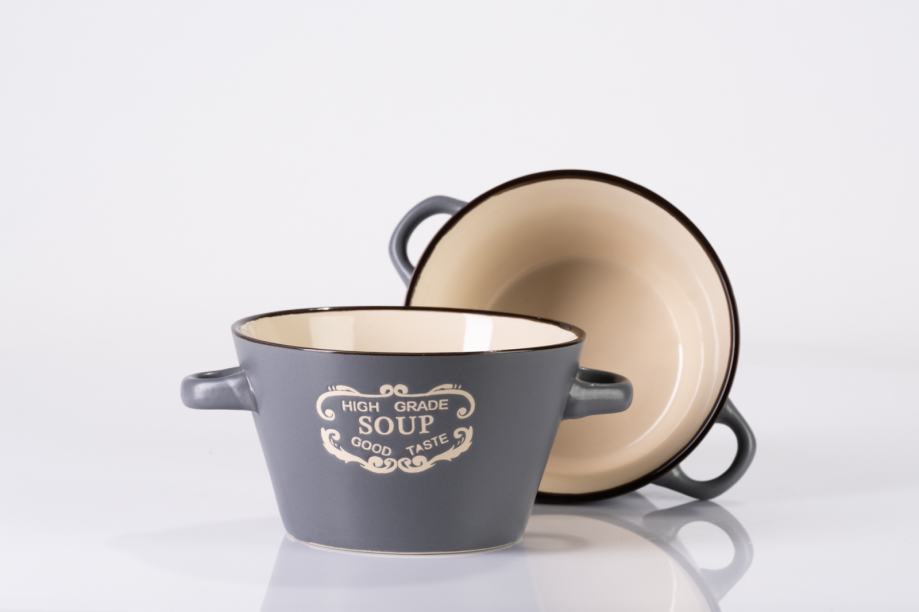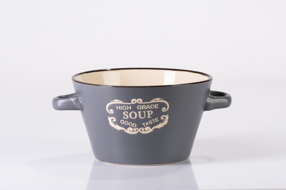 Elegantna keramična posoda v sivi barvi z dvema priročnima ročajema in dekorativnim potiskom na sprednji strani. Primerna je za serviranje, shranjevanje ali kot dekorativen dodatek v kuhinji.Kakovostna izdelava poskrbi za dolgo obstojnost in čudovit videz. Večji nakup prinese večji popust!