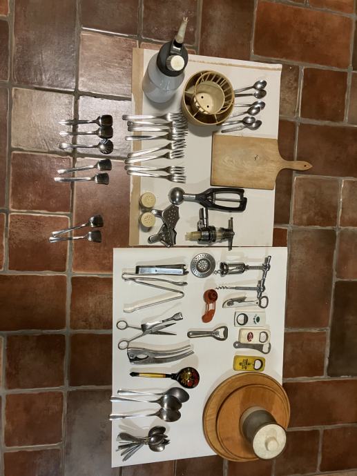 drobni inventar za gostinstvo,skodelice za kavo, vroče napitke 2x komplet, za sadne kupe, sladoled krožnički, vrči, flaškoni, pladenji, odcejevalniki, kozarci za pivo, coctail kozarci, alu posode, lito železne posode več kosov, stojalo za vino, posoda za hlajenje piva,jedilni pribor nov, , termo posodi, plastični podstavki, leseni ribežni, posoda za led ,odpirači, žličke za kavo, sladoled, vilice,inox sekljalnik, inox izdelovalec testenin, nov sekljalnik in rezalnik plastični itd.........., nekaj novega, večino rabljeno. se nadaljuje na drugem oglasu za isto ceno