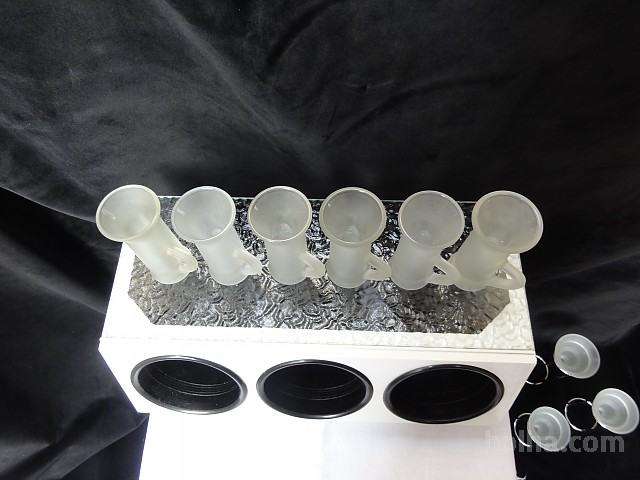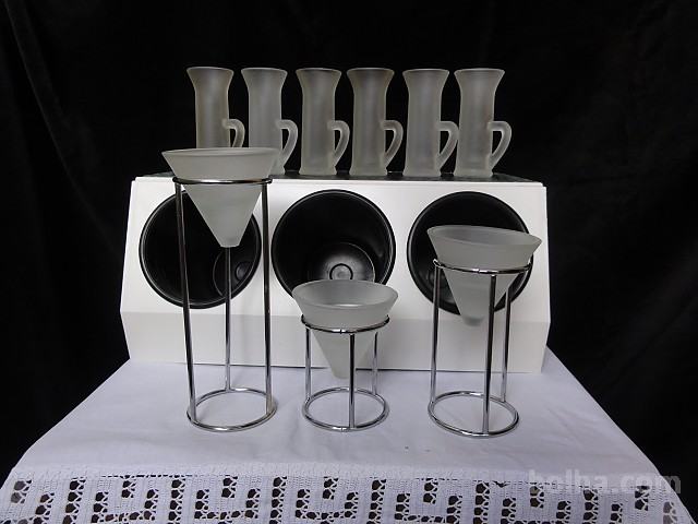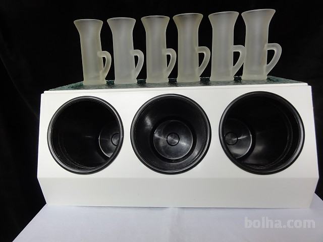 ŠEST KOZARČKOV - MAT STEKLO Z ROČAJI ZA ŽGANO PIJAČO (GRENČICE, LIMONČEK ...). Visoki so 10 cm, premer 4,3 cm. Kozarčki so neuporabljani.