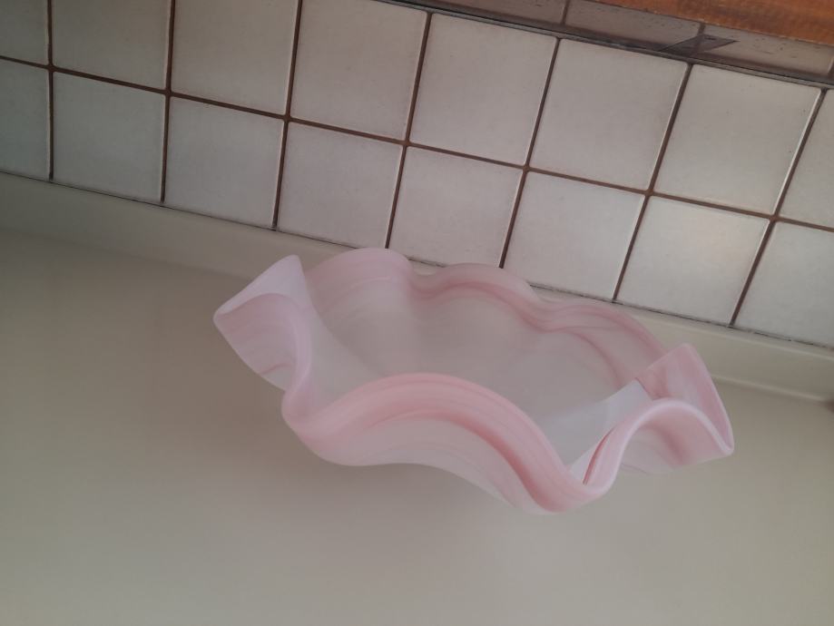 Prodam 1 kpl/8 kos nerabljenih kozarcev s poslikavo v antiko-roza barvi in valovito skledo v enaki barvi.