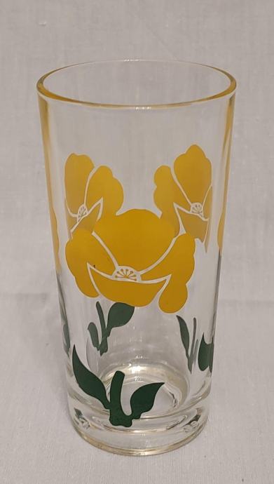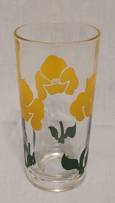 VINTAGE KLASIČEN STEKLEN KOZAREC S POTISKOM - CVETLIČNI MOTIV.