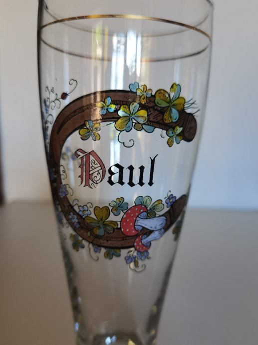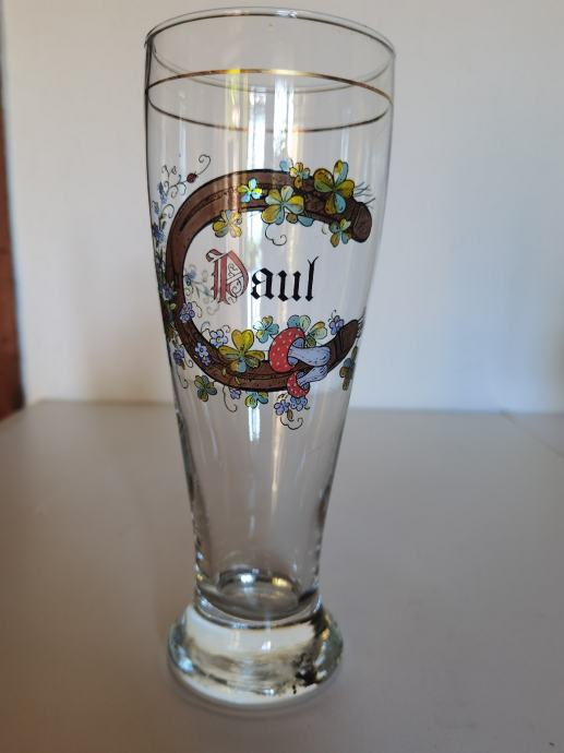 Kozarec za pivo 0,5 litra z napisom Paul in podkvijo za srečo, primerno tudi za darilo, praktično nerabljen