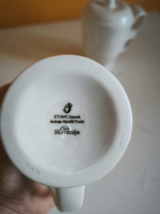 izkopaninah, ki so jih našli na slovenskih tleh. Na skodelici sta dve ptici, ki sta zrcalno obrnjeni ena proti drugi, njun rep pa se nadaljuje v ročaj. Ptica je simbol miru, ljubezni in harmonije. Upodobljena na lončku z željo, da vsem uporabnikom prinese veliko "dobrih misli".