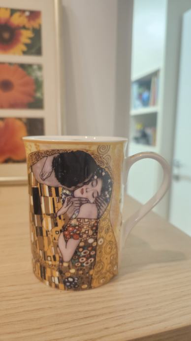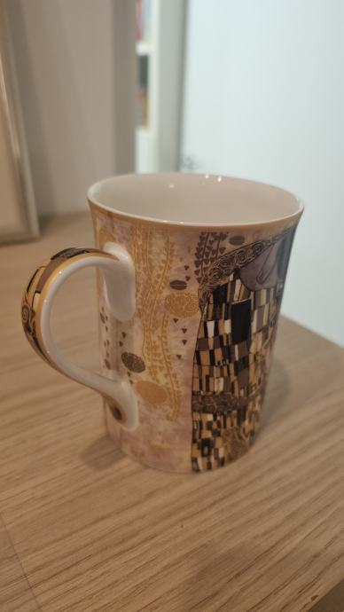 Prodam lonček iz porcelana z dekorjem Gustav Klimt POLJUB dimenzije 10,5x115x8 vsebina lončka 250 ml, za kavo, čaj.... Lonček je nov in se ni uporabljal ter je v originalni embalaži.