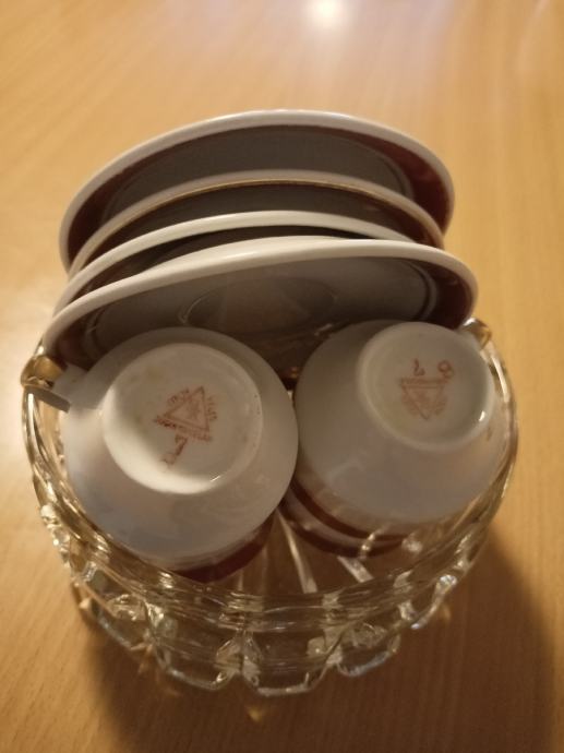 Prodam komplet starejših skodelic za kavo Jugoporcelan Titov Veles. V kompletu so 4 skodelice z krožniki in večjav steklena posoda za pecivo, premer 15 cm in višine 8 cm. Cena 8 eur. Tatjana 031532603. Vabljeni k ogledu še ostalih mojih oglasov