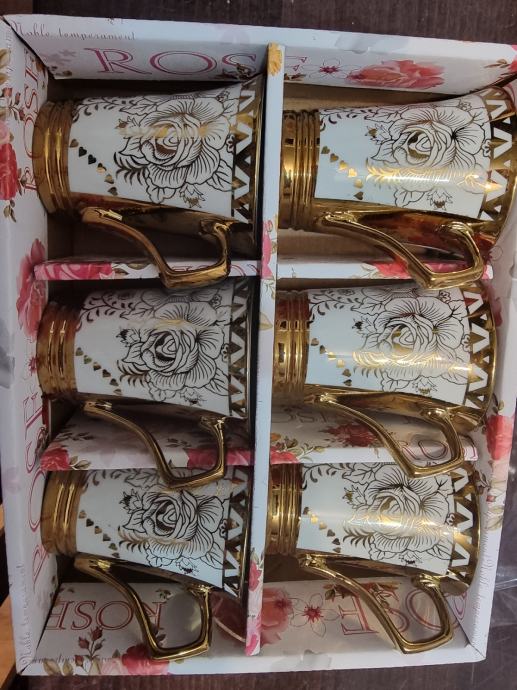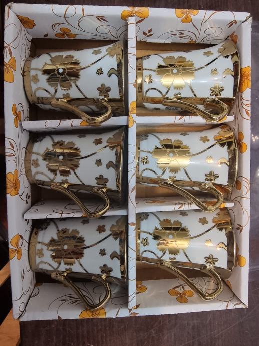 Prodam več vrst nerabljenih "zlatih" šalčk za kavo.volumen 1,5dcl.