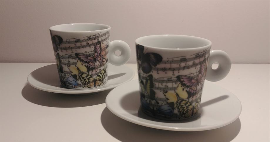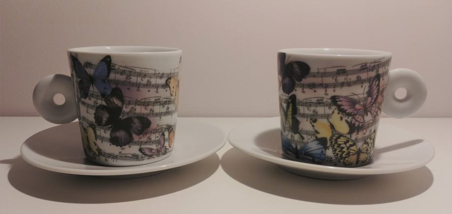 Prodam set dveh nerabljenih skodelic za kavo ali čaj s krožnikom.