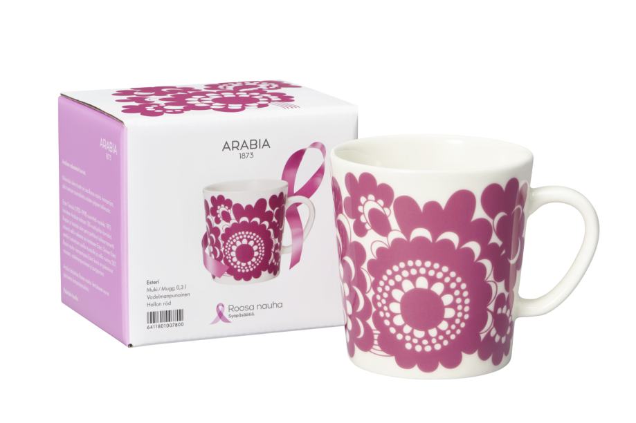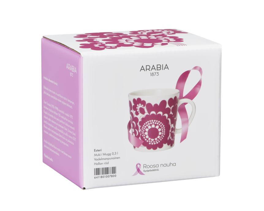 Skodelica je bele barve, okrašena z vzorcem esteri, ki ga je leta 1973 oblikovala Esteri Tomula. Za kampanijo Pink ribbon odeta v rožnato barvo. Omejena serija, odlično darilo.