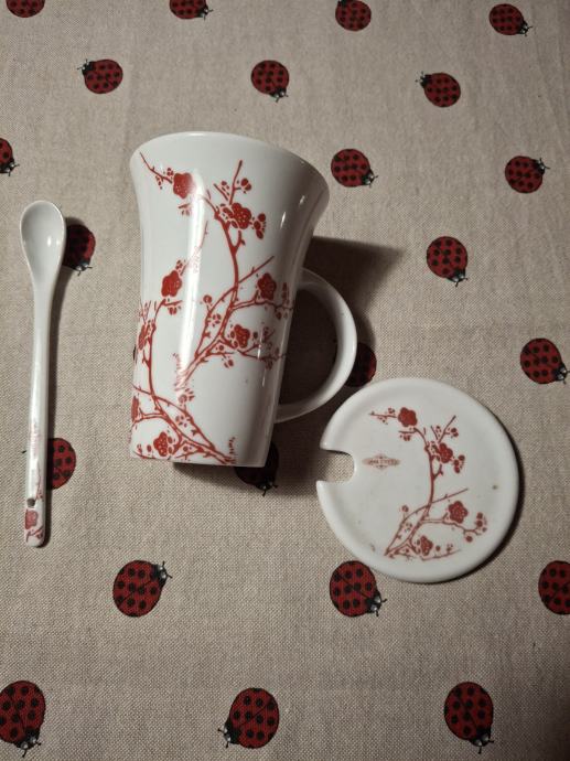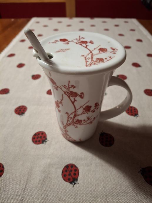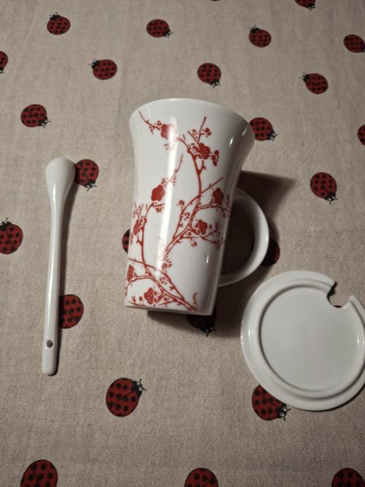Skodelica za čaj "1001 cvet", z žličko in pokrovom. Keramično.