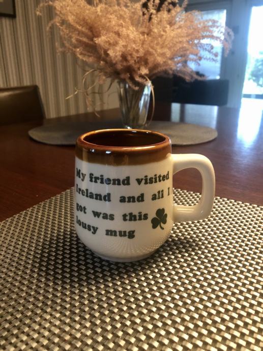 Prodam novo, kupljeno na Irskem, skodelico za čaj/ kuhano vino/ kavo in vrček za rum/whiskey/ mleko. Cena je za oboje skupaj.