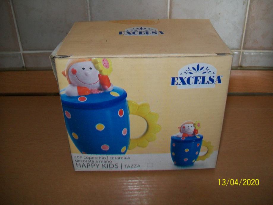 Skodelica je nova, še zapakirana, nikoli rabljena, tako da jo toplo priporočam. Je roza barve, tako da je bolj primerna za deklice. Narejena je iz keramike. Seveda je zelo primerna za darilo.