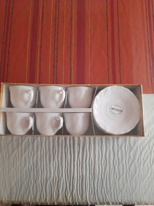 Garnitura belih skodeli za kavo, nove še zapakirane.
