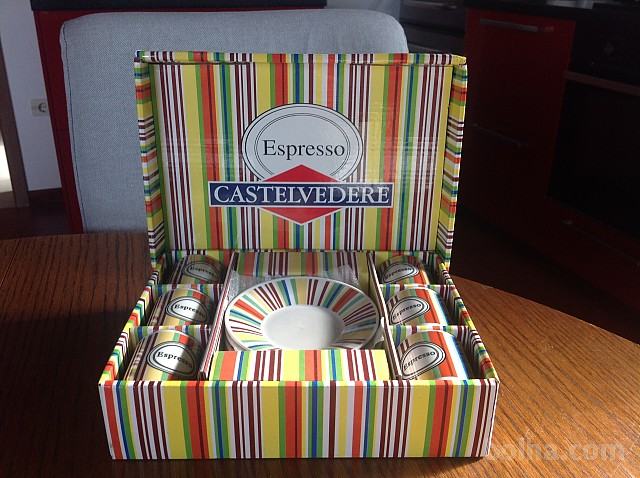 Prodam 2 kompleta po 6 malih skodelic za kavo espresso, keramika, italijanskega proizvajalca Castelverde, volumen cca 50ml, pakirane v ličnih škatlah. Cena je za 12 skodelic.