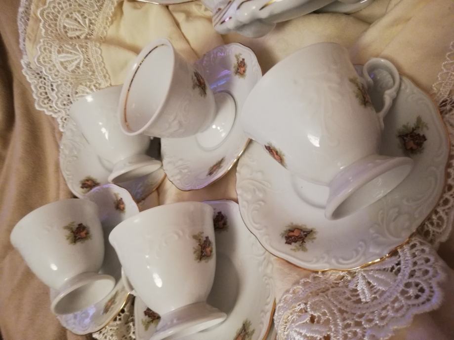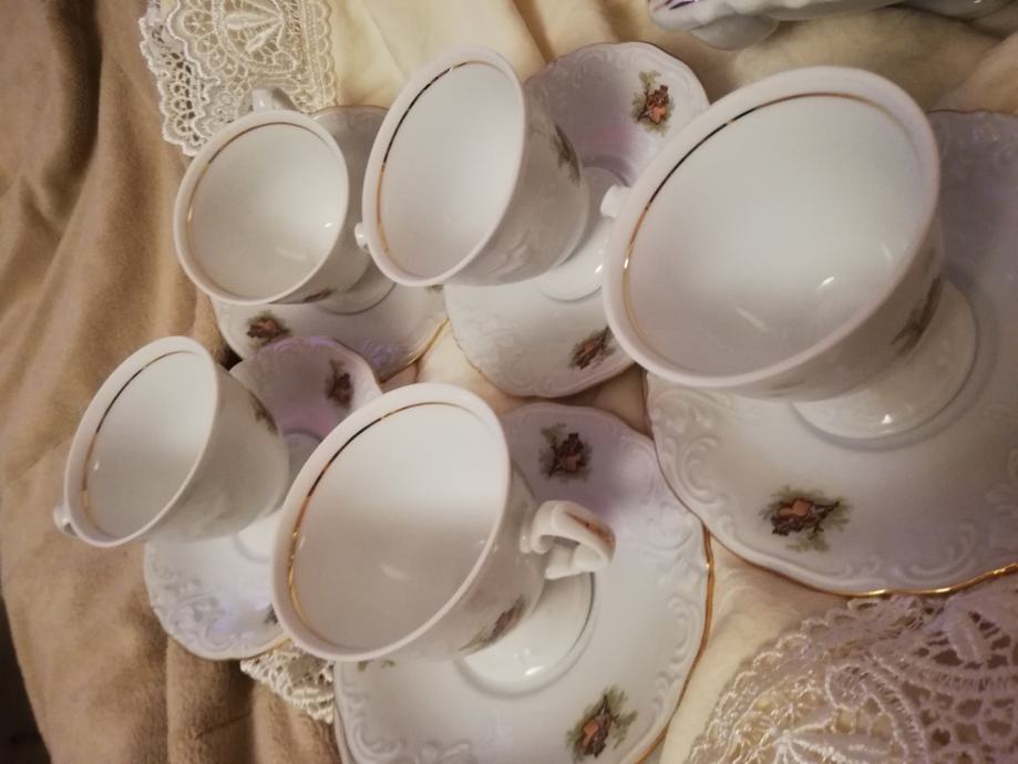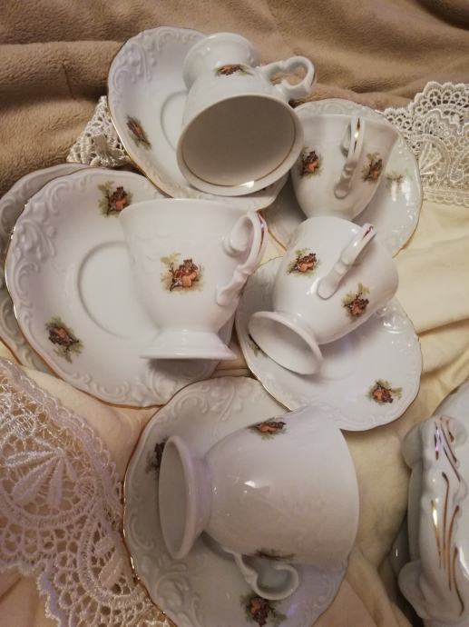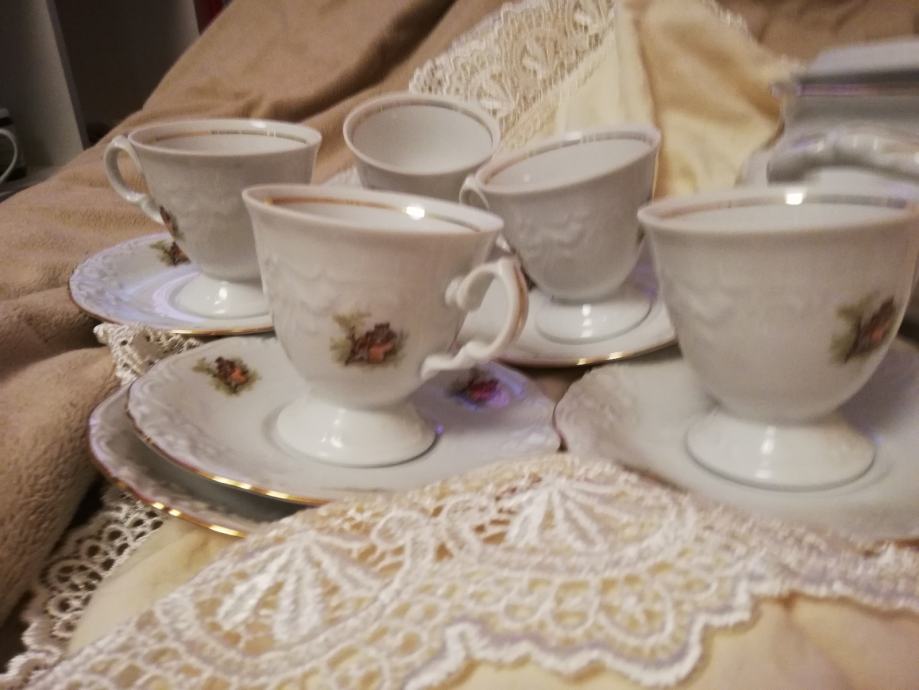 Prodam čudovit komplet za kavico (5 skodelic, 6 krožnikov) Kvaliteten porcelan Poland. CENA 45 €. DOMŽALE