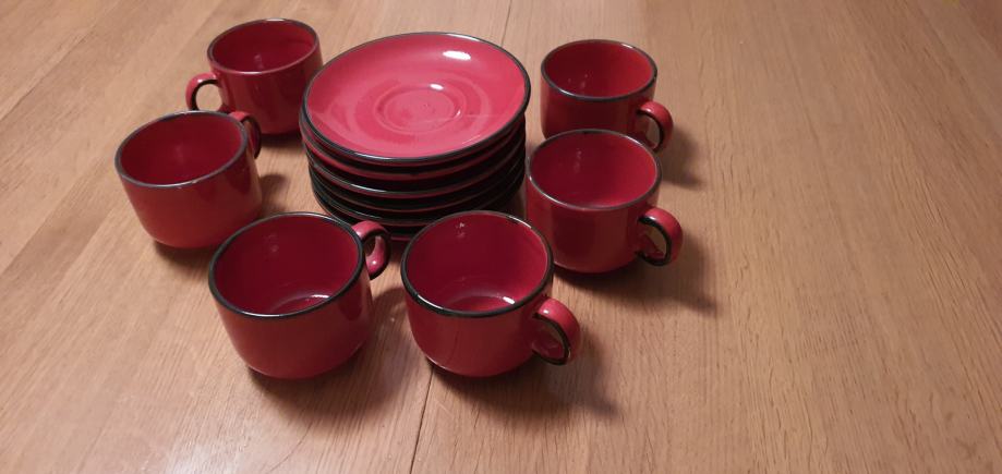 Prodam 6 rdečih keramičnih skodelic skupaj s krožnički