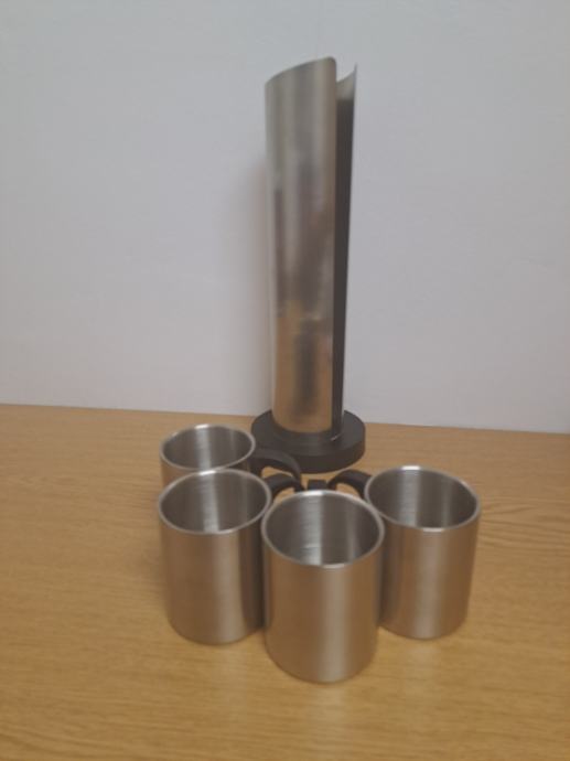 Prodam nove skodelice v stojalu iz nerjavečega jekla. Skodelica drži 2 dcl.